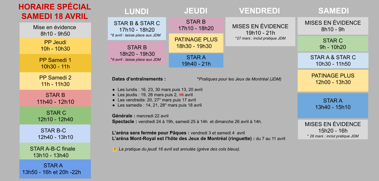 Calendrier et horaires des pratiques - Gala des 10 ans